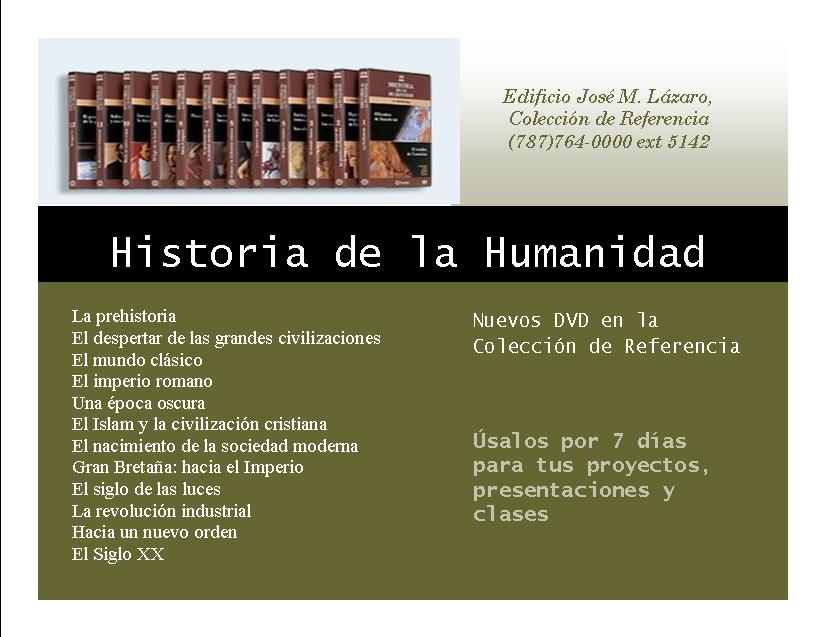 La Colección de Referencia y Revistas del Edificio José M. Lázaro cuenta, tanto con recursos impresos, como electrónicos y audiovisuales. Entre los dvds disponibles para préstamo, se destacan: