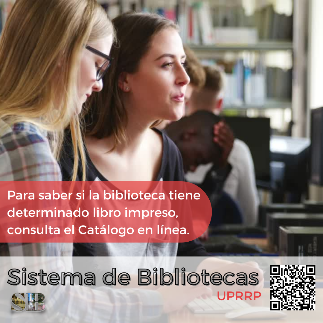 Esta valiosa herramienta te ayuda a localizar todos aquellos recursos impresos que están disponibles en nuestras bibliotecas. Te permite hacer búsquedas keyword, por autor, por título, por tema o búsqueda general, combinando términos de búsqueda. Al recuperar la información debes fijarte en la clasificación del recurso, la localización y la colección a la que pertenece y su disponibilidad.