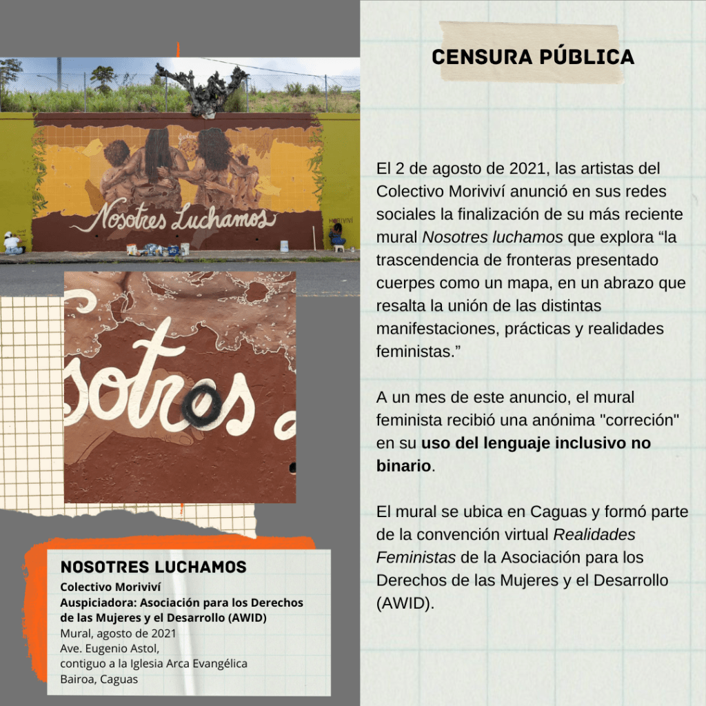 Ríos Víner, Jessica. “Vandalizan mural creado en defensa de la mujer en Santurce.” El Nuevo Día, 27 Oct. 2015, https://www.elnuevodia.com/noticias/locales/notas/vandalizan-mural-creado-en -defensa-de-la-mujer-en-santurce/?r=71534