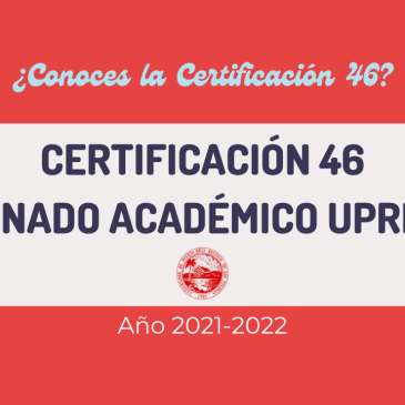 Profesor, ¿Conoces la Certificación Núm. 46? Esta certificación, aprobada por el Senado Académico en octubre de 2021, busca concientizar a los profesores y profesoras del Recinto de Río Piedras para que eviten proveer a sus estudiantes las lecturas que estarán utilizando en sus cursos. La recomendación dada es que en su lugar, les ofrezcan una … More Certificación Núm. 46 del Año Académico 2020-2021