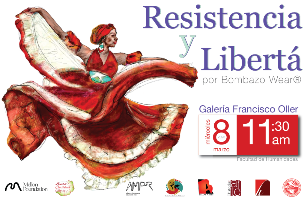 La exhibición, que se presentará en la Galería Francisco Oller de la Facultad de Humanidades, del 8 de marzo al 30 de mayo de 2023, visibiliza la importancia de la vestimenta en la historia de la bomba puertorriqueña rindiendo tributo a las ancestras, costureras y diseñadoras que utilizaron el arte de la tela y la aguja como símbolo de identidad y resistencia. La selección curatorial presenta ejemplos que datan del siglo XVII hasta los diseños creados por Milterí bajo la línea “Bombazo Wear”. El montaje contó con la colaboración de estudiantes del curso Introducción a las operaciones de museos y galerías, impartido por el profesor Raymond Cruz.