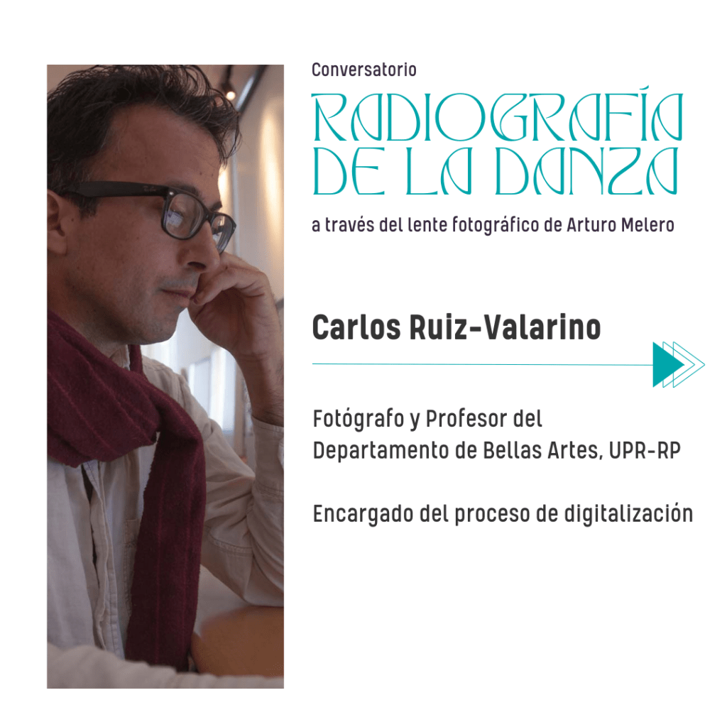El conversatorio pretende dar a conocer los pormenores del proyecto de digitalización de alrededor de 3,000 imágenes en negativos sobre el baile y los bailarines en Puerto Rico y divulgar su acceso a través del portal de la Biblioteca Digital Puertorriqueña. La colección de negativos fue donada por Arturo Melero Morant (1917-2000) y consta de 30,000 negativos sobre moda, boda, y danza. Estas forman parte del Archivo de la Danza, adscrito a la Colección de las Artes y Música del Sistema de Bibliotecas.