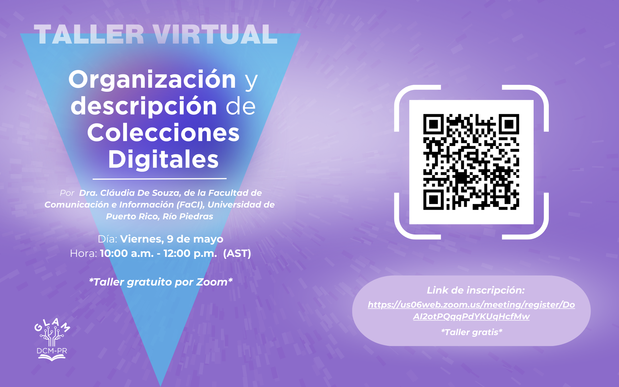 Se explicará qué son los metadatos, su importancia y cómo se utilizan para facilitar el acceso, la preservación y la gestión de la información. El tercer taller se llevará a cabo el próximo 9 de mayo de 10:00 am – 12:00 pm (AST) por ZOOM.