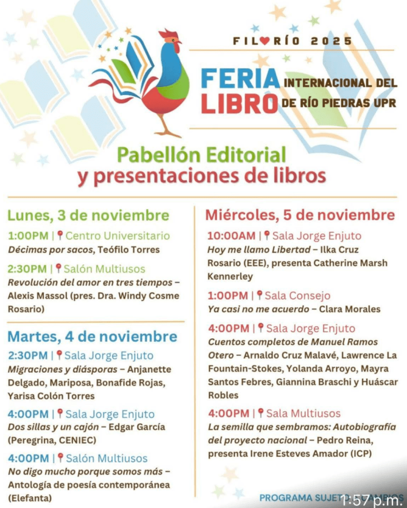 #FILRÍO2025#UPRRP#FeriaDelLibro#CulturaViva#LecturaEsVida#PuertoRicoLee#AmantesDeLosLibros#LiteraturaPuertorriqueña#EventosCulturales#LibrosYMás