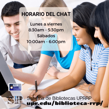 El servicio de Referencia Virtual del Sistema de Bibliotecas de la UPRRP, ha venido para quedarse y ahora que la pandemia del Covid-19 nos obliga a trabajar a distancia se hace más pertinente que nunca. El servicio de Referencia Virtual se ofrece tanto en modalidad asincrónica como sincrónica, con el fin de brindar el máximo … More ¡Conoce a l@s bibliotecari@s que te atienden en la Referencia Virtual!