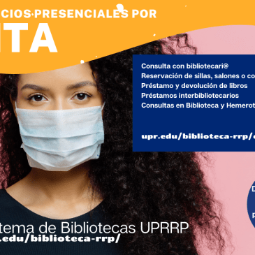 Este semestre el Sistema de Bibliotecas estará ofreciendo servicios remotos y servicios presenciales por cita. Conéctate con tu biblioteca, visitando la página o las redes sociales: Facebook: @biblioteca.uprrp, Twitter: @sbuprrp, WordPress: @blogsbuprrp YouTube: @bit.ly/sisbib Entérate de todos los recursos y servicios que están disponibles para ti. En la Referencia Virtual podrás hacernos tus preguntas 24 … More Estudiantes: El Sistema de Bibliotecas les da la bienvenida al primer semestre 2021-2022